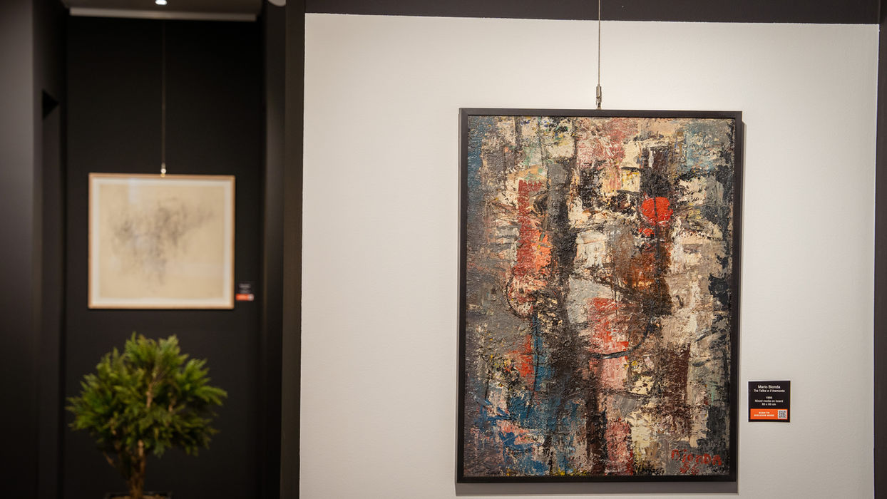 Curated by Federico Sardella in 2023, Immagini sommerse was a retrospective of Mario Bionda’s works, including paintings and frottages. The exhibition highlighted the materiality of his pieces and their tactile, informal quality, showcasing Bionda’s importance in the history of contemporary art.